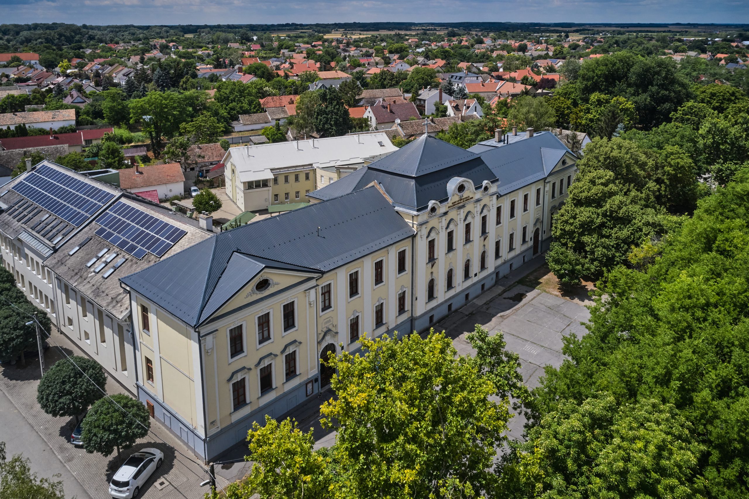Makó egyik legszebb neobarokk stílusú épülete, a római katolikus fiúpolgári (Szent István tér 14–16.) tömeg- és térhatásában a város egyik legimpozánsabb iskolája. Az épület megvalósítása Kövecs Antal (1870–1940) nagyszentmiklósi születésű, Makón letelepedett építőmester nevéhez fűződik. Az épület homlokzat tengelyében elhelyezett manzárdtetővel és az oromfallal képes volt méltóságteljes ünnepélyességet teremteni. Ennek rendelte alá a tervező a két szárnyat és a sarokrizalitot. A középrizalitos szakasza a földszinti íves ablakaival, de az emelet mozgalmas szemöldökpárkányával is magára vonja a tekintetet. A sarokrizalitok már kevésbé dinamikusak, ezt a nyugodtabb hatású timpanonnal is érzékelteti. Az épület – funkciójának megfelelően – nem főbejárattal készült, hanem az elemi és népiskolai szerepkörből adódóan két szimmetrikusan elhelyezett kapuzattal, fölöttük barokk szemöldökdísszel és az építés évszámaival. A templom felőli szakasz 1927-ben, a másik 1933-ban készült el. Az alaprajzi elrendezés egyszerű: egytraktusú oldalfolyosós szerkezetű.